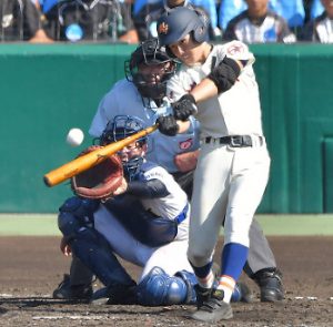 5回表、1点を追う盛岡大付の攻撃は3番・植田選手のタイムリーで同点に追いつきます。