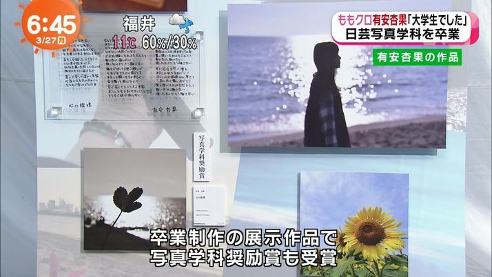 出典:http://livedoor.blogimg.jp/ 有安杏果さんは学業とももクロを両立して大学を卒業しました。 単位を落とさず4年で修了できるとは、かなりの努力家ですね! ソロコンサートでは、有安杏果さんが実際に撮った写真を流していて、 大学を出たことは決して無駄ではなかった! これからもいろんな世界での表現者としてやっていく!という強い意志を感じました。 これからも努力家の有安杏果さんを見守っていきましょう!